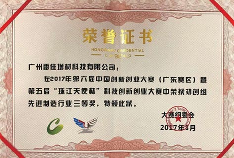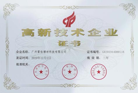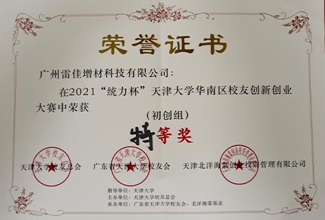 In 2017, the company was selected as the 2017 Guangzhou Entrepreneurial Leading Talent Team for "Industrialization and Application development of precision metal 3D Printing Equipment", and it is the only selected project unit in the field of major equipment and robotics in Guangzhou.