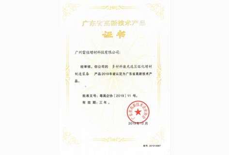 Multi-material laser selective melting additive manufacturing equipment products were identified as high-tech products of Guangdong Province in 2019